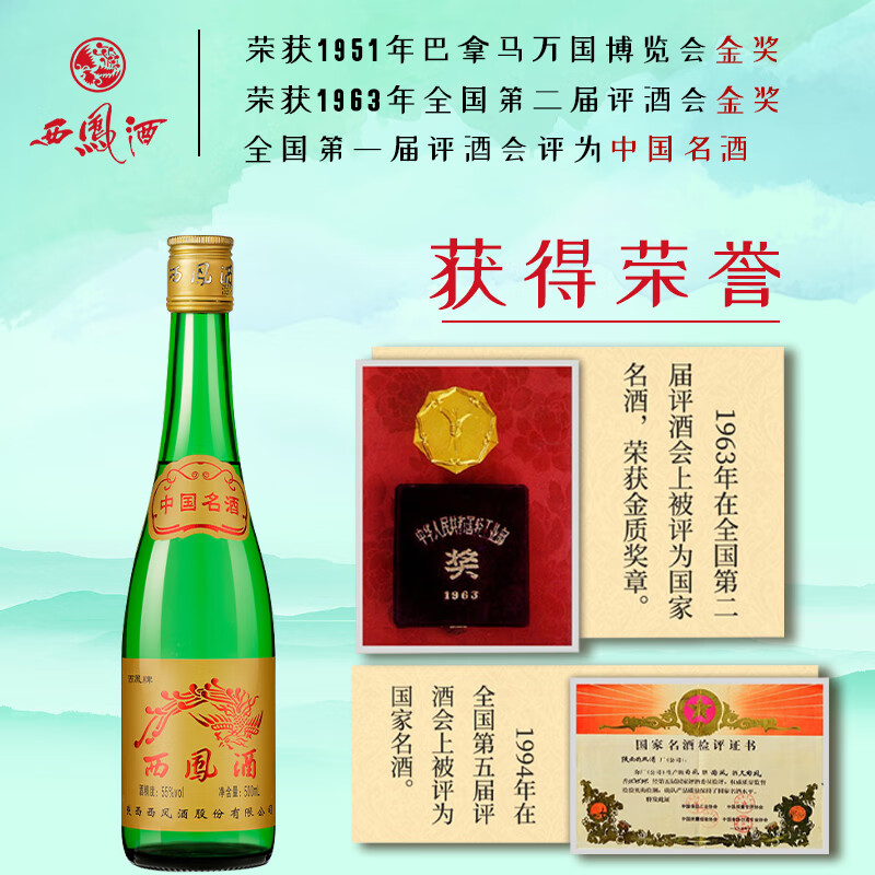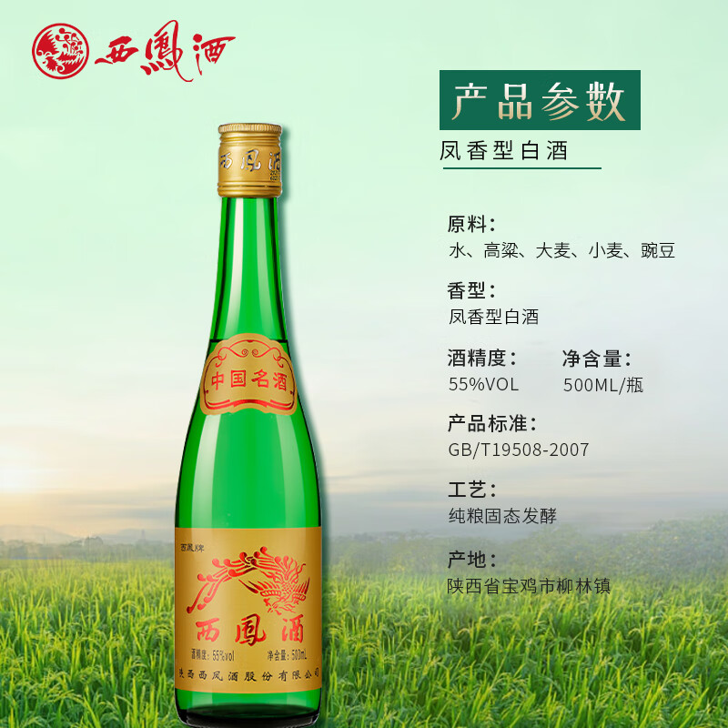 西凤酒 黄标高脖绿瓶 55度 500ml*6瓶 整箱装 凤香型白酒价格:290.00元!