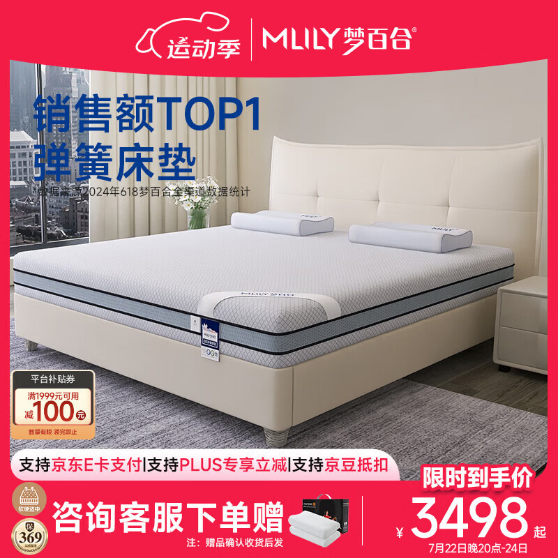 梦百合朗怡零压记忆棉弹簧床垫软硬两用双人席梦思1.5×2米价格:4499.00元!