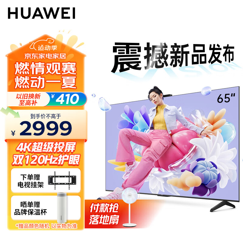 华为电视65英寸Vision智慧屏 4 SE Pura 70投屏好搭档 AI摄像头超高清智能液晶超薄电视机HD65KUNL价格:2999.00元!