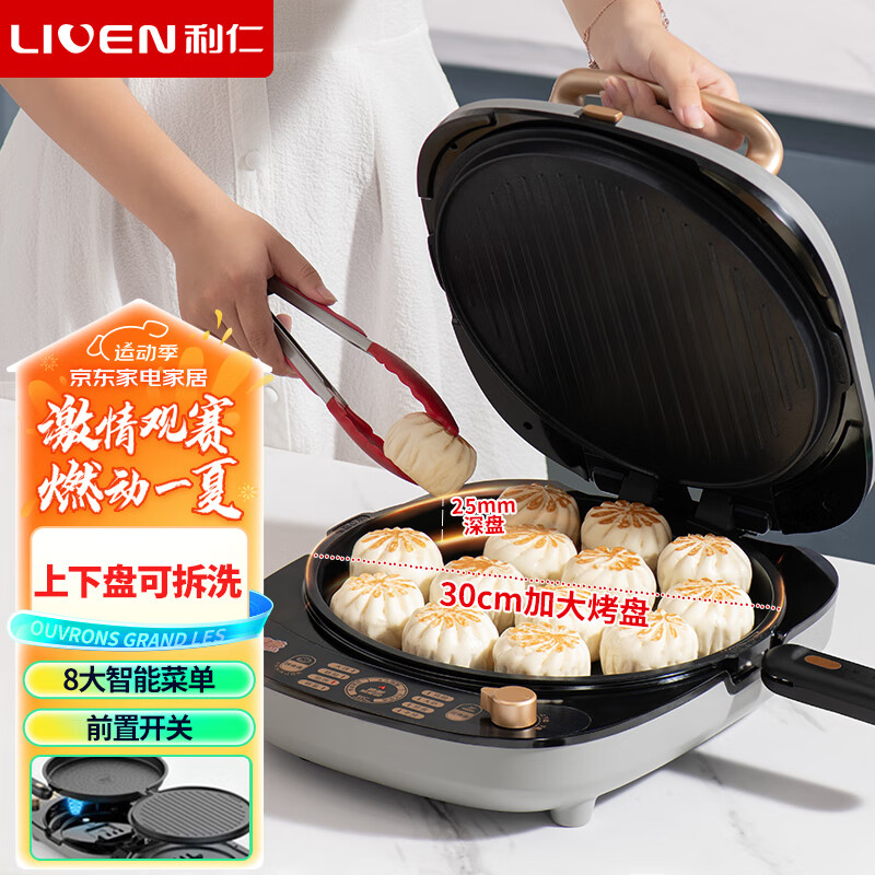 利仁(Liven)电饼铛家用双面加热煎饼锅上下盘可拆洗电饼档加深盘大号烙饼锅烤肉锅三明治早餐机LR-D3036价格:279.00元!