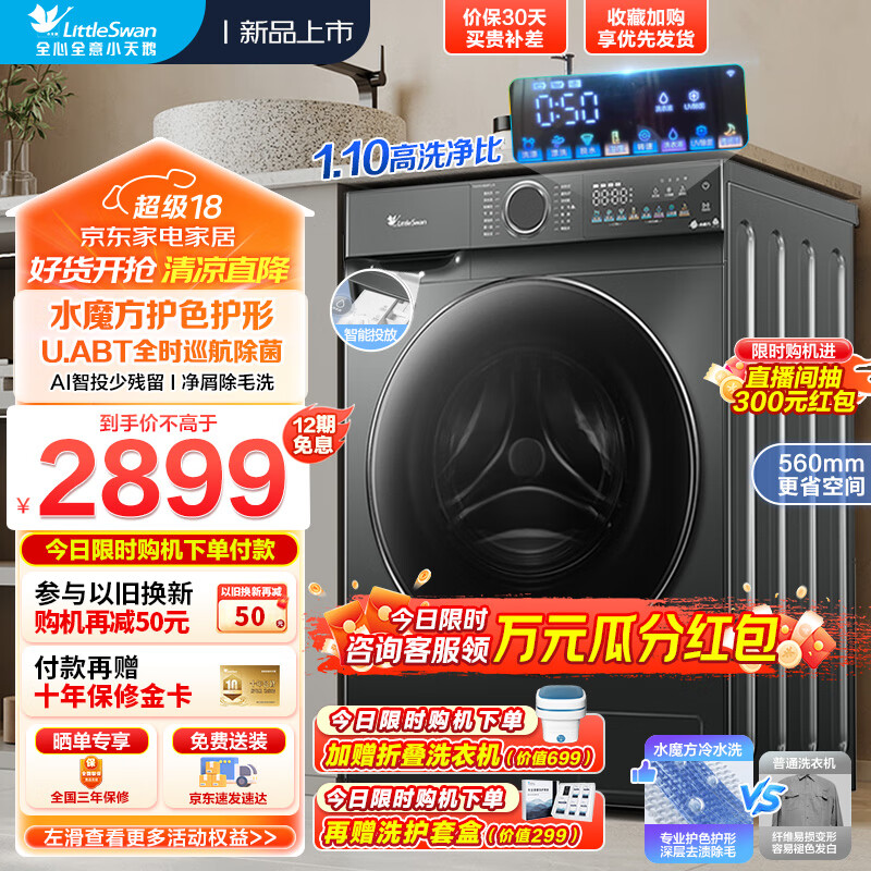 小天鹅(LittleSwan)滚筒洗衣机全自动 10公斤大容量变频水魔方防缠绕 智能投放1.1洗净比内衣除菌婴儿服洗 TG100V868PLUS价格:2799.00元!