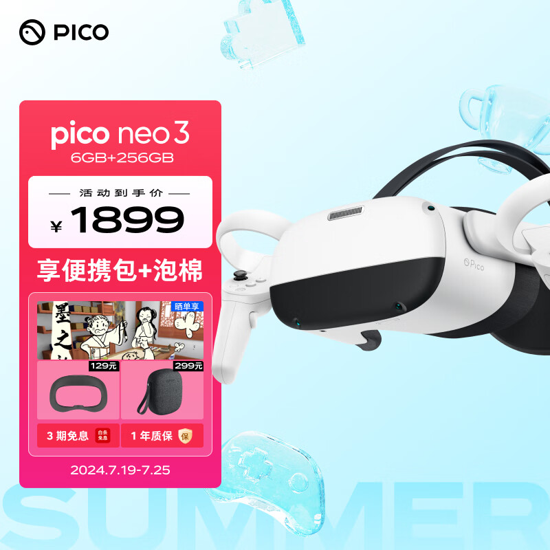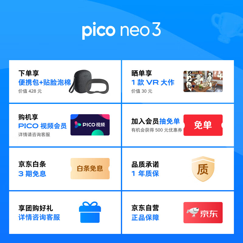 PICO抖音集团旗下XR品牌PICO Neo3 VR 一体机6+256G VR眼镜 体感游戏机 智能眼镜AR眼镜投屏串流头显价格:1899.00元!