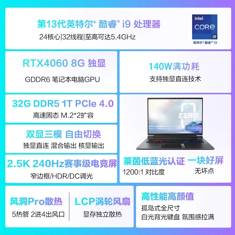 雷神(ThundeRobot) ZERO2024银翼灰/橙独显轻薄全能骨灰玩家级电竞游戏本AI设计师建模移动工作站911旗舰笔记本电脑 i913900HX/4060/32G/1T加配版价格:11399.00元!