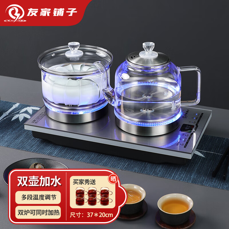 友家铺子(Biooner)全自动底部双上水电热烧水壶玻璃烧水器家用办公茶台茶桌一体嵌入式电茶炉茶具套装 轻奢银清洁款价格:259.00元!