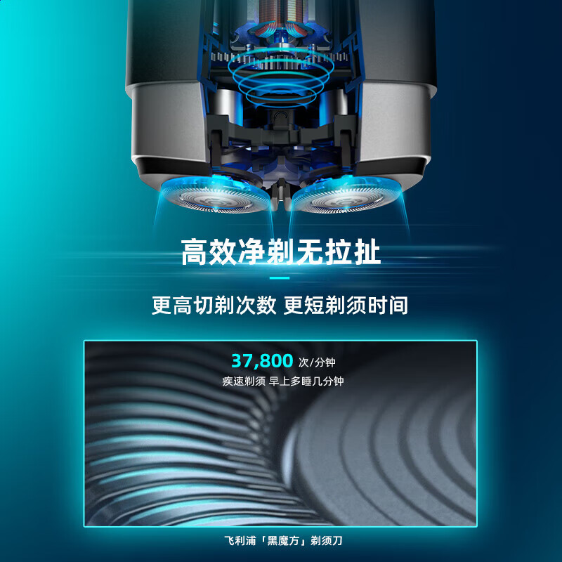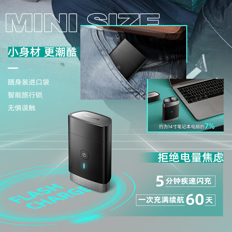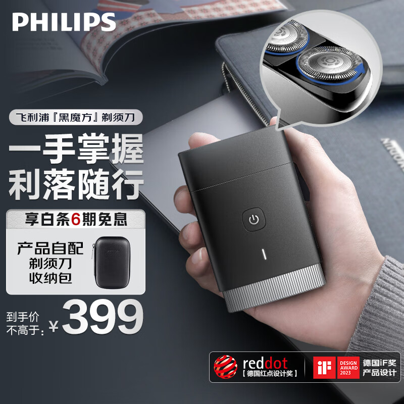 飞利浦(PHILIPS)剃须刀电动刮胡刀口袋便携胡须刀须刨男士 【黑魔方】PQ888黑色 普通装价格:499.00元!