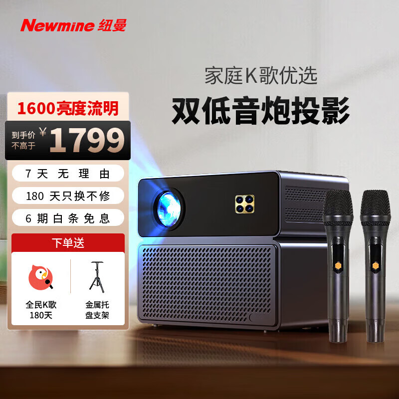 纽曼T1投影仪家用 家庭影院 卡拉ok音响一体机1080P办公会议超高清智能带麦克风投影机价格:1779.00元!