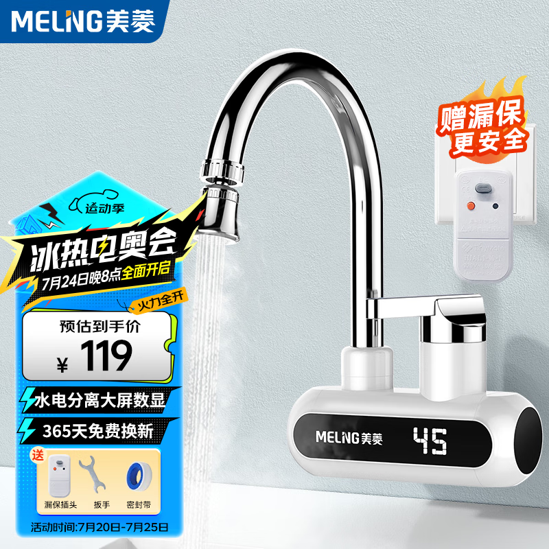 美菱MELNG 电热水龙头侧进水即热式电热水器热水宝速热厨房小厨宝冷热两用家用水龙头MF-D303白色款价格:119.00元!