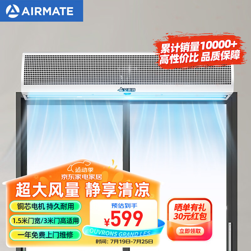 艾美特(Airmate )AFM3015-04风幕机 自然风商用贯流式1.5米风帘机价格:599.00元!