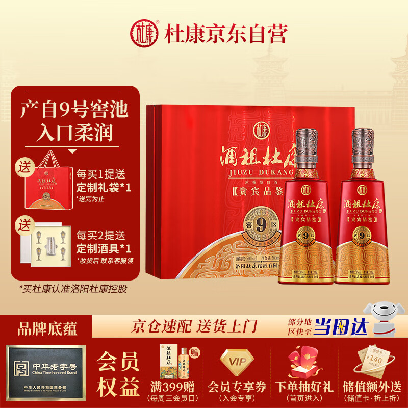 杜康9窖区贵宾品鉴浓香型白酒50度500ml*2瓶礼盒装宴请宴会宴席商务酒价格:331.00元!