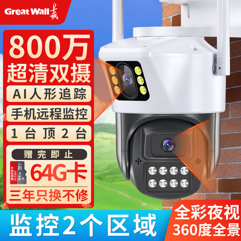 长城无线家用摄像头手机远程监控器360度无死角带夜视全景语音农村室外高清wifi户外防水旋转球机价格:119.00元!