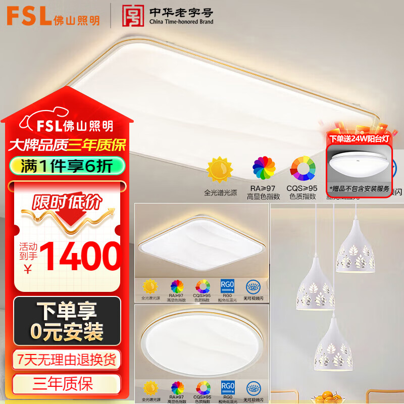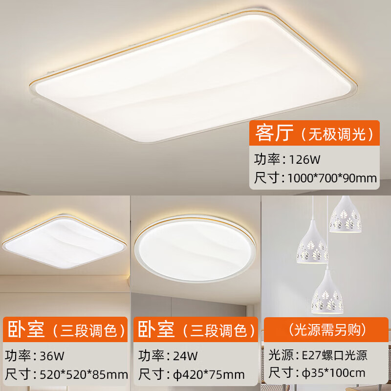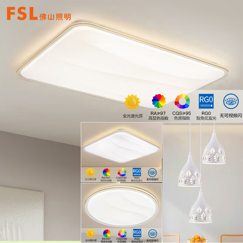 FSL佛山照明LED灯具套餐客厅卧室吸顶灯低蓝光护眼高显调色两室两厅价格:2332.00元!