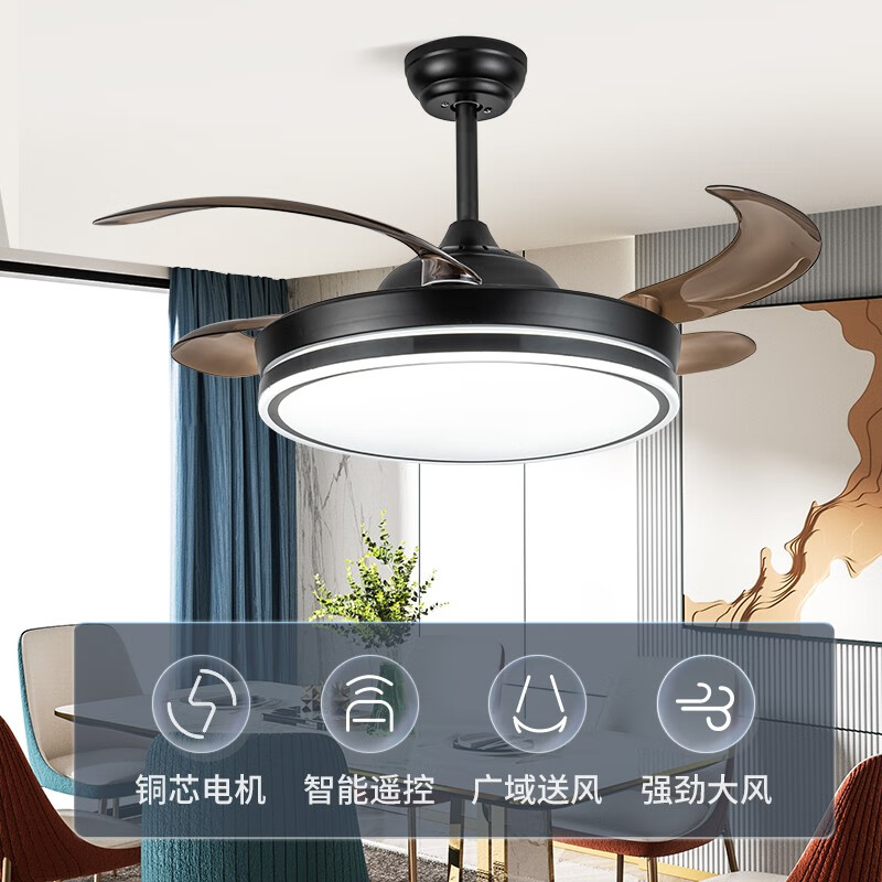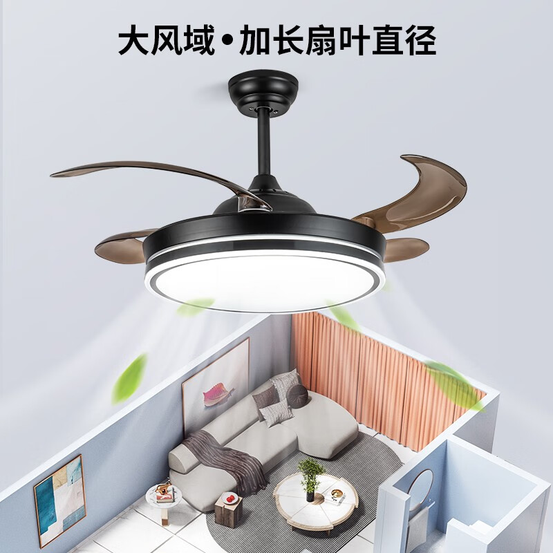 钻石牌(DIAMOND) 吊扇灯 隐形风扇灯led餐厅客厅卧室吊灯饰 现代简约电扇灯吸顶带灯吊扇 42吋黑色双圆-6档遥控-正反转功能价格:359.00元!