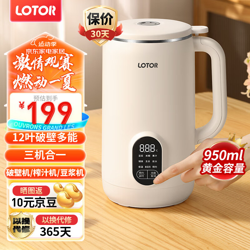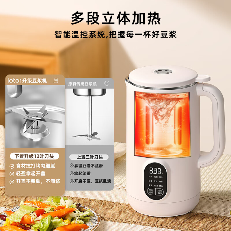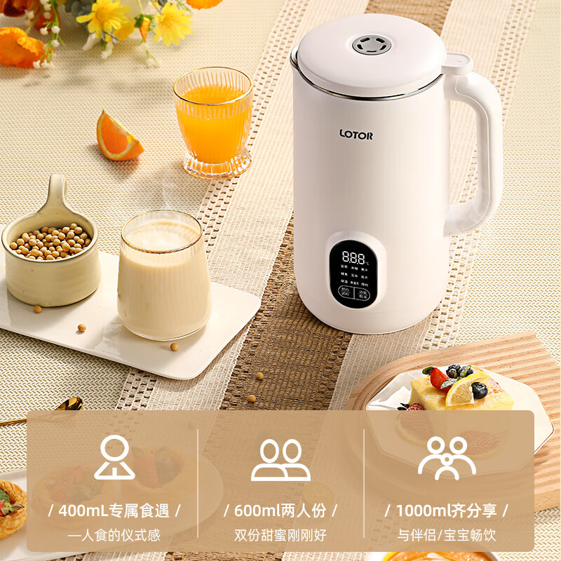 LOTOR小浣熊迷你豆浆机家用小型便携破壁机全自动免煮免洗免滤多功能榨汁机早餐机料理机 DJJ-80白色价格:199.00元!