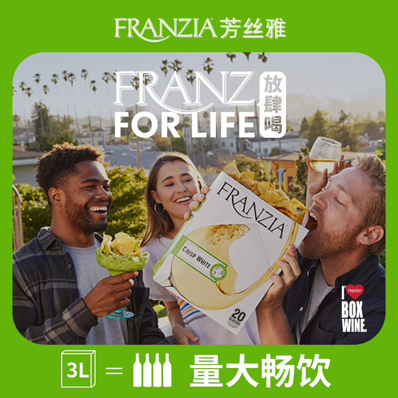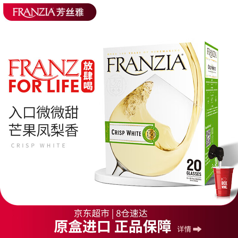 芳丝雅FRANZIA清爽白半甜3L 夏日畅饮装盒装白葡萄酒 美国进口每日红酒价格:125.00元!