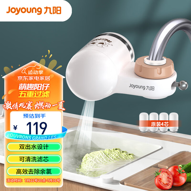 九阳 (Joyoung )净水器水龙头台式前置净水机家用厨房过滤器自来水可视化可清洗滤芯JYW-RT130价格:119.00元!