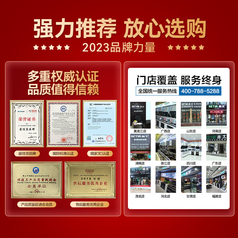 森太(SETIR)抽油烟机套装小户型尺寸顶侧双吸油烟机鸳鸯定时燃气灶消毒柜厨房三件套B822+TM81+F260 天然气价格:2899.00元!