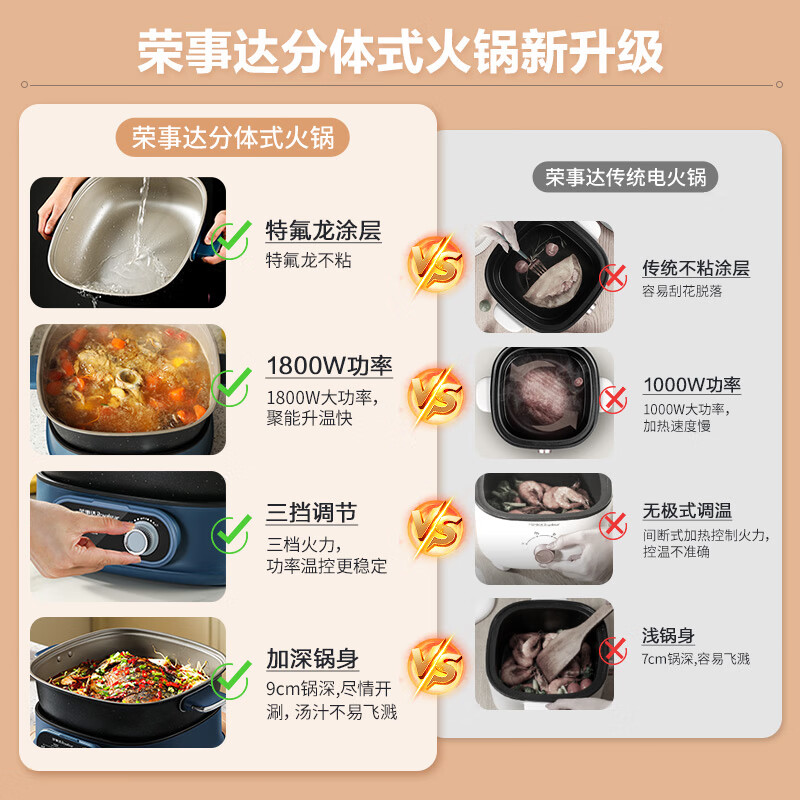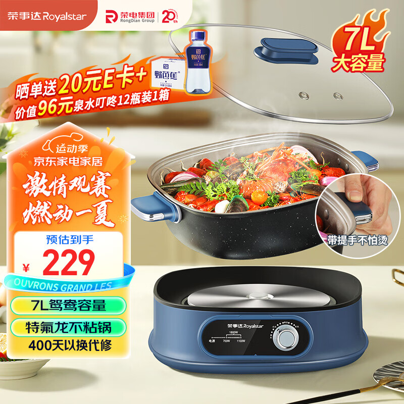 荣事达(Royalstar)电火锅大容量电煮锅火锅专用锅7L电锅火锅多功能锅分体式家用电热锅电炒锅多用途锅RHG-60XH1价格:229.00元!