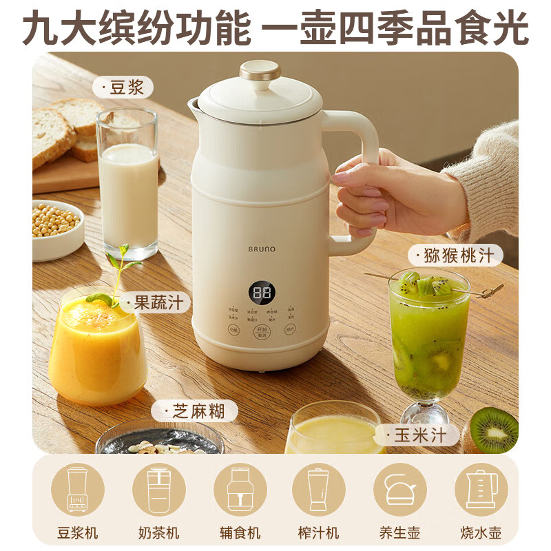 BRUNO豆浆机1-2人家用小型迷你大小容量破壁机全自动免煮清洗米糊榨汁搅拌机养生壶辅食早餐机0.6L价格:199.00元!