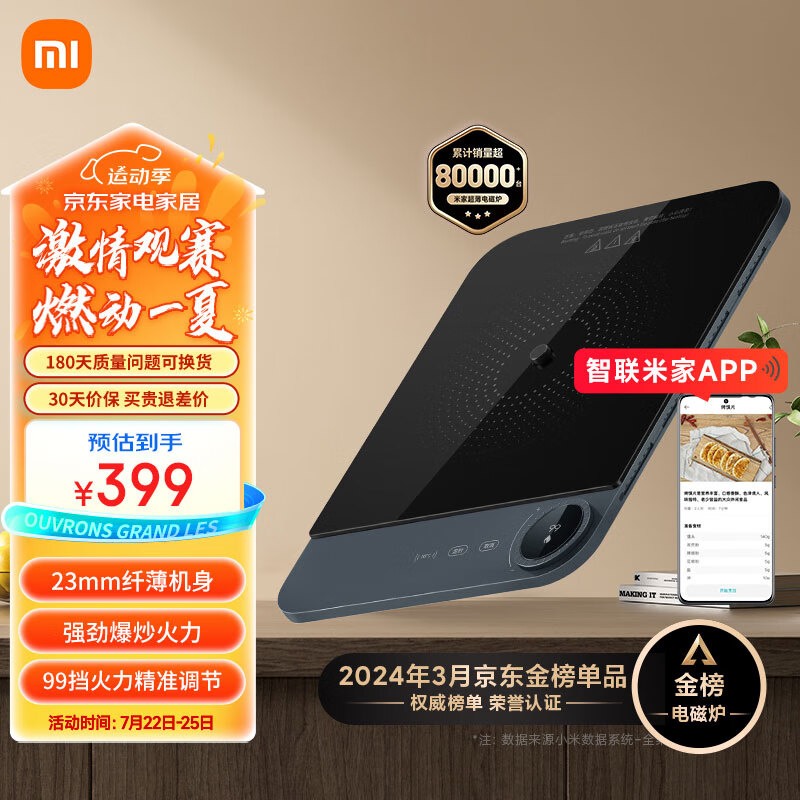 米家小米超薄电磁炉 大功率猛火爆炒 99挡火力 火锅炒菜蒸煮煎炸烧水 家用多功能 围炉煮茶 智能互联价格:399.00元!