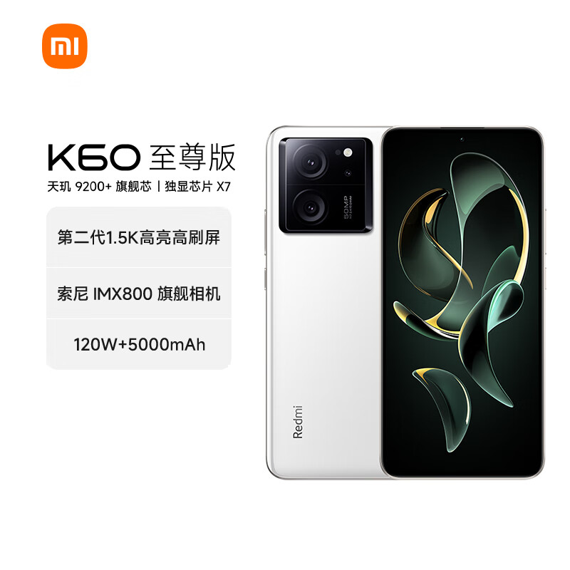 Redmi K60 版 天玑9200+ 独显芯片X7 1.5K直屏 索尼IMX800 光学防抖 12GB+256GB 晴雪 小米红米K60 Ultra价格:2599.00元!