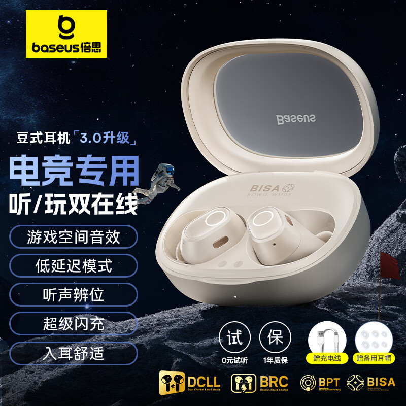 倍思WM03 真无线蓝牙耳机入耳运动低延迟降噪超长续航游戏电竞跑步音乐睡眠适用于华为苹果小米 白色价格:159.00元!