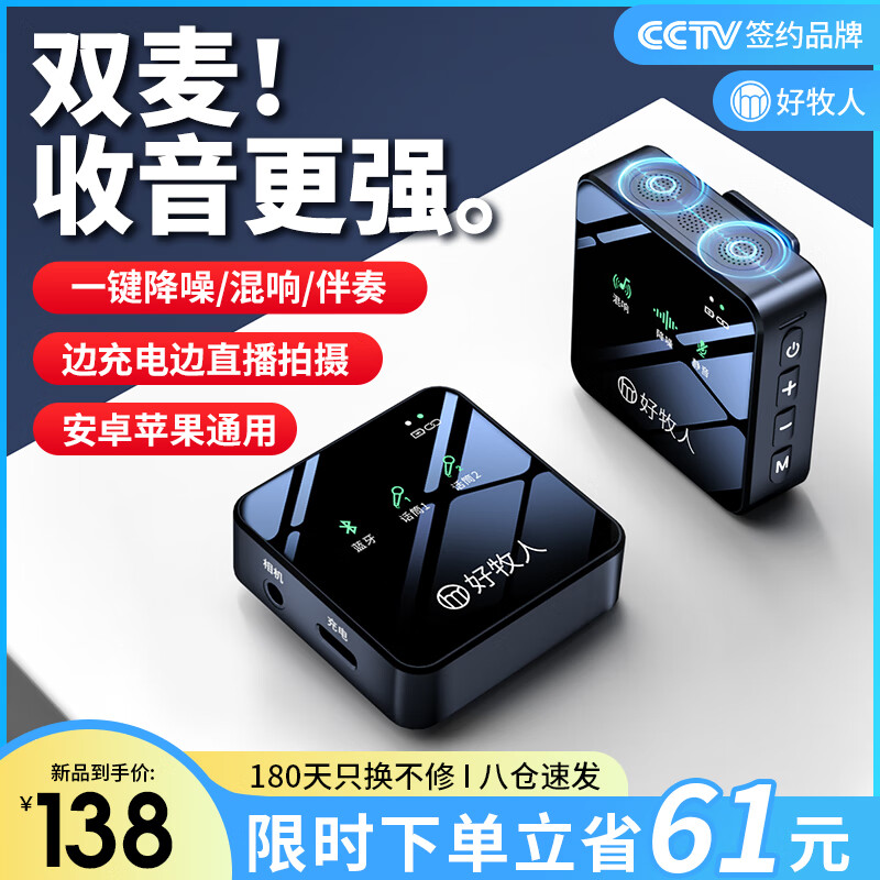 好牧人无线领夹麦克风抖音主播直播录音设备户外专业降噪短视频小蜜蜂收音麦K歌话筒手机电脑相机专用价格:199.00元!