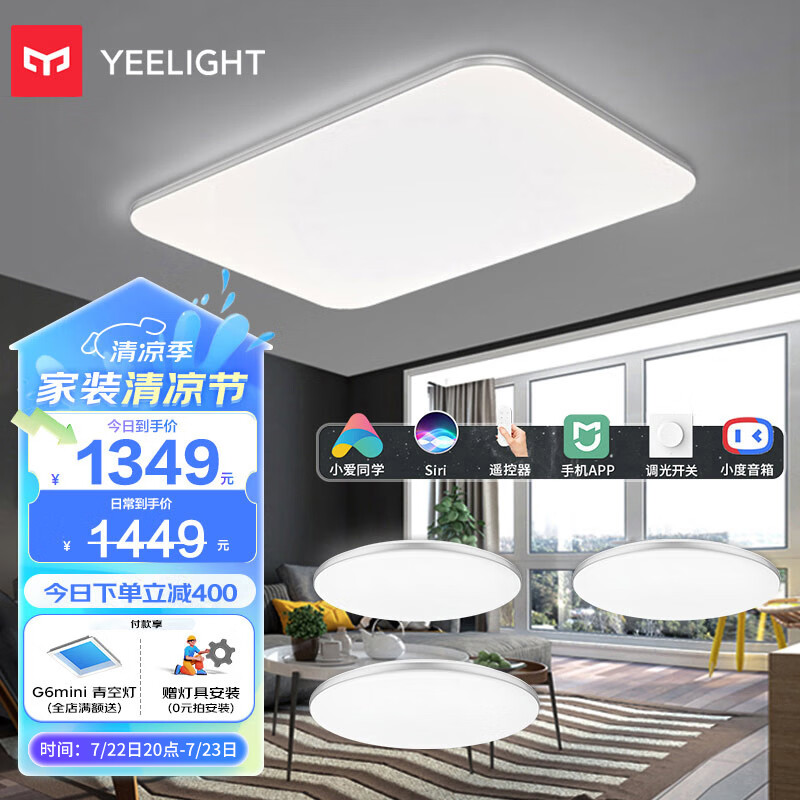 Yeelight灵犀led灯吸顶灯 支持米家智能灯具 客厅卧室灯具套餐3室1厅B价格:1749.00元!