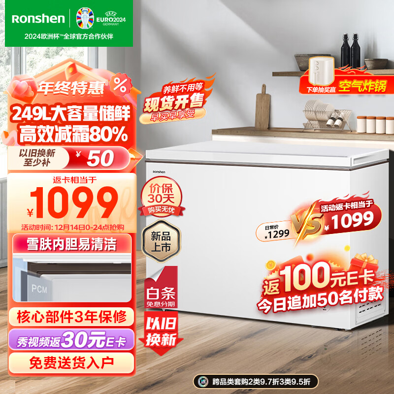 容声249升低霜大容量冰柜家用商用冷藏冷冻转换冷柜 一级能效 雪糕冰柜 厨房卧式冰箱BD/BC-249ZMSMA价格:1199.00元!