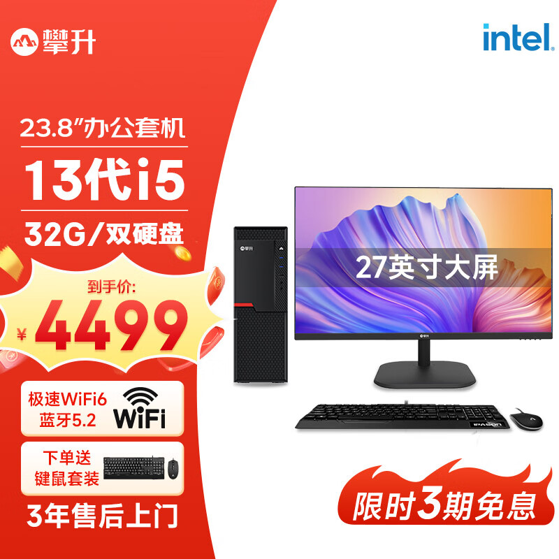 攀升商和S2 设计师办公商用台式电脑主机(i5-13400F 32G 512G+2T 4G独显 WiFi6)27英寸整机diy组装机价格:4499.00元!