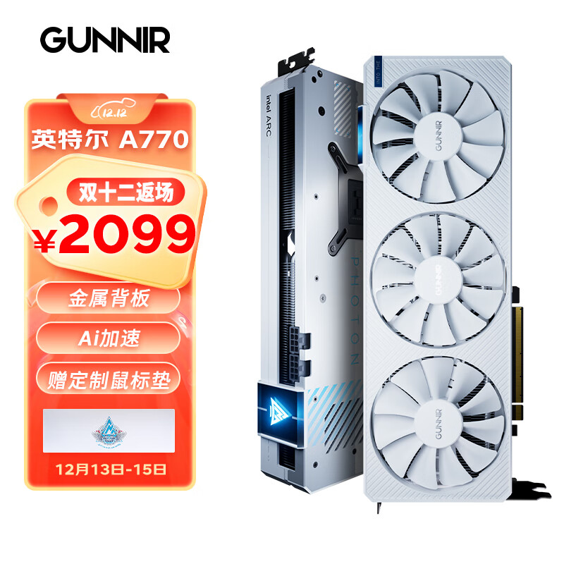 蓝戟(GUNNIR)Intel Arc A770 Photon 16G OC W 2400MHz GDDR6超频版 电脑显卡设计视频剪辑台式游戏显卡价格:2199.00元!