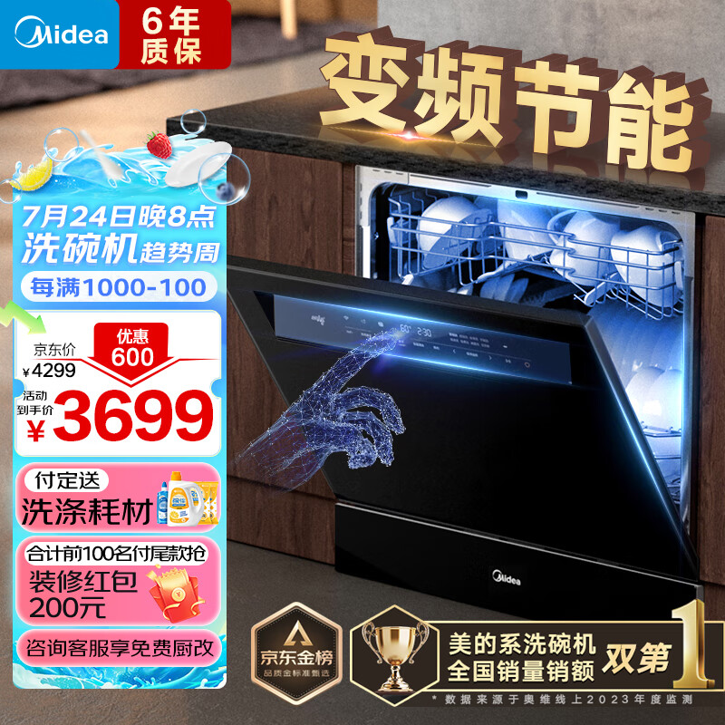 美的(Midea)10套 嵌入式台式洗碗机V8 变频节能 三星消毒 热风烘干 倾斜大屏免弯腰 家用智能 京东小家价格:3699.00元!