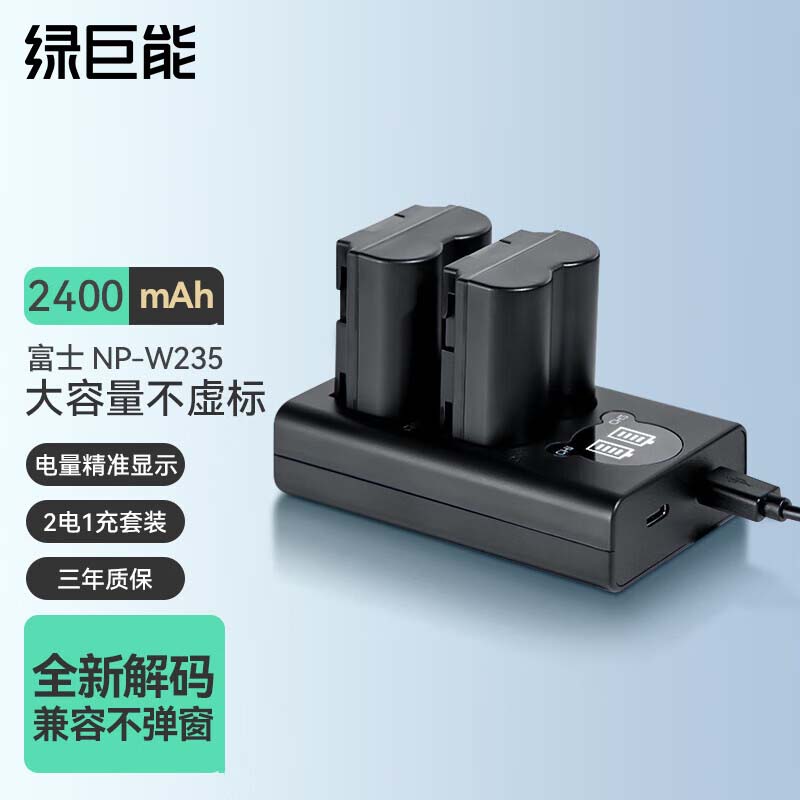 绿巨能(llano)富士NP-W235相机电池XT-5电池XT4/xs20/GFX100S/GFX50SⅡ/XH2S等相机电池充电器两电双充套装价格:249.00元!