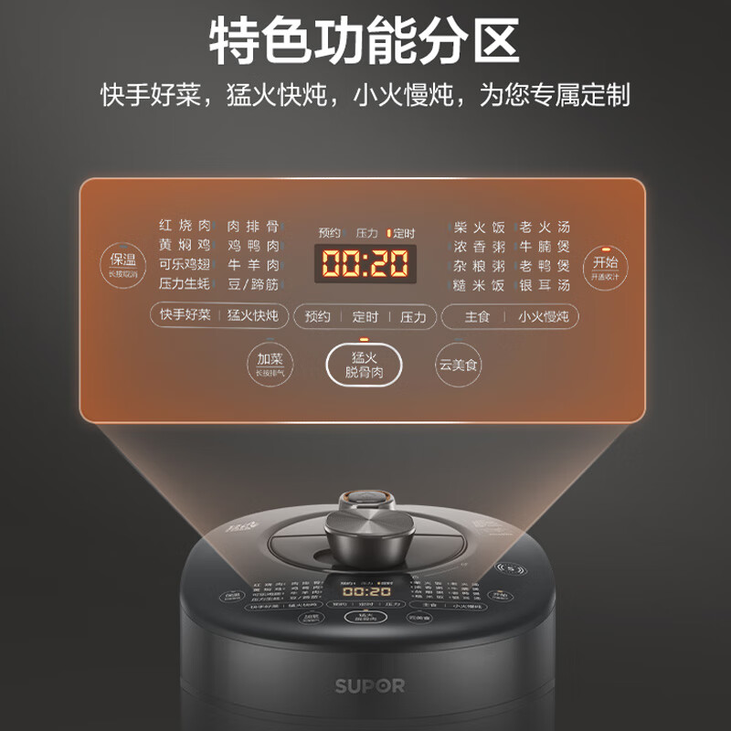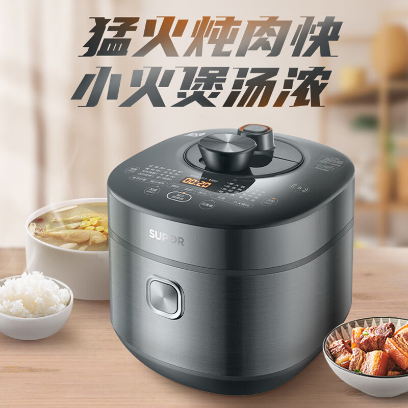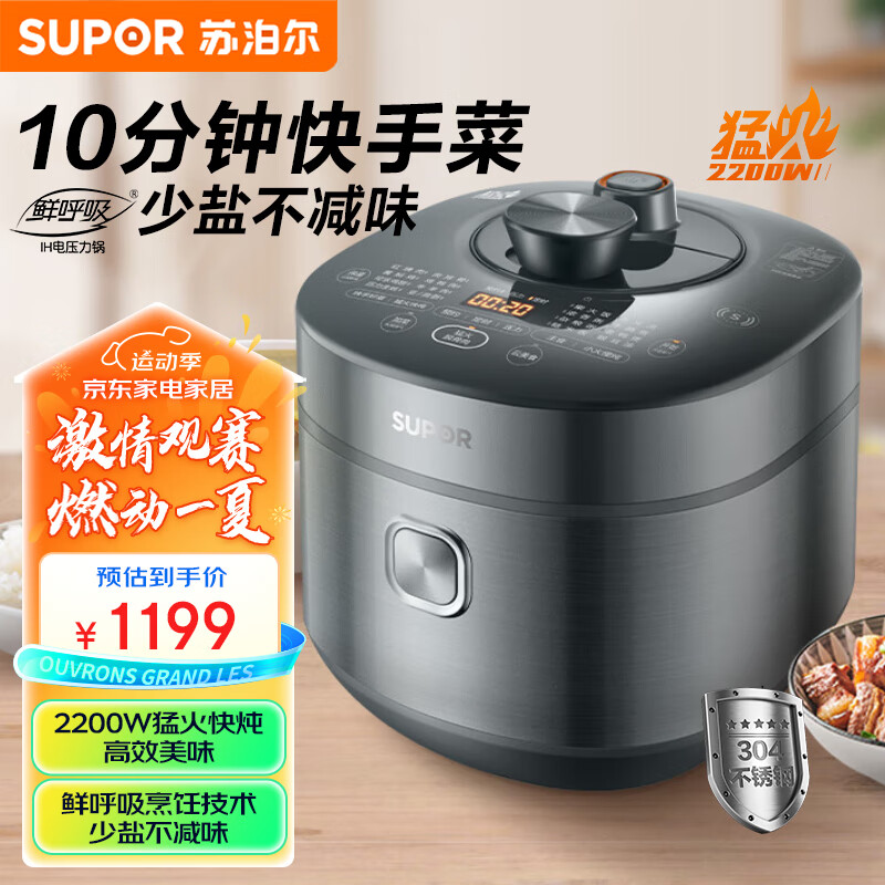 苏泊尔(SUPOR)鲜呼吸IH电锅5L家用 2200W猛火煮饭煲汤 NFC食谱不锈钢球釜SY-50HC37Q双胆高压锅3-6人价格:1199.00元!
