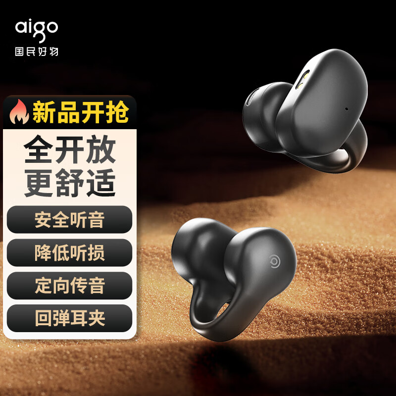 爱国者(aigo)蓝牙耳机TWS 骨传导概念气传导耳夹开放式不入耳运动通话耳机 适用小米等手机平板电脑通用 TX02黑价格:129.00元!