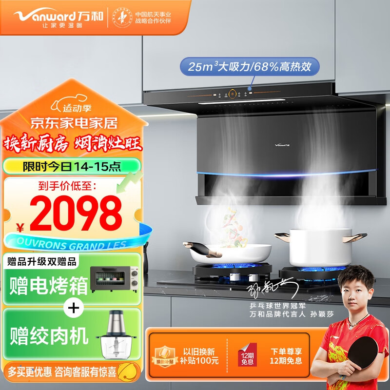万和(Vanward)顶侧双吸7字型家用抽油烟机 68%高热效燃气灶具烟灶套装 25m3/min大吸力WL856+G6L50(液化气)价格:1998.00元!