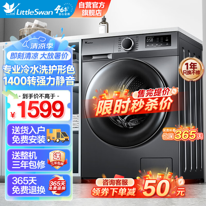 小天鹅(LittleSwan)滚筒洗衣机全自动 10公斤大容量家用 健康除菌除螨洗 羽绒服母婴洗 以旧换新 TG100VT096WDG-Y1T价格:1599.00元!