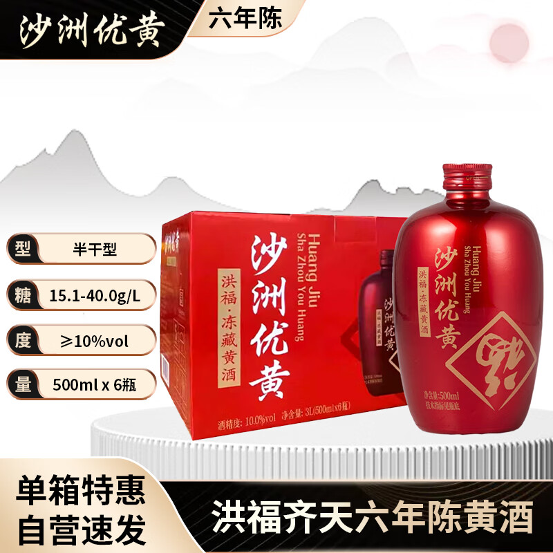 沙洲优黄 洪福冻藏六年 清爽型半干 苏派 黄酒 500ml*6瓶 整箱装价格:228.00元!
