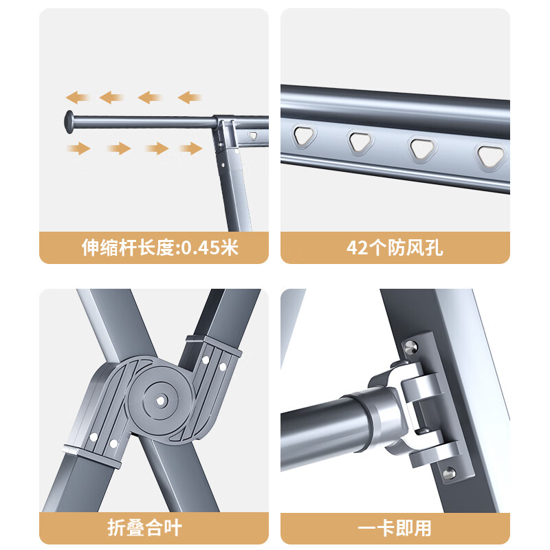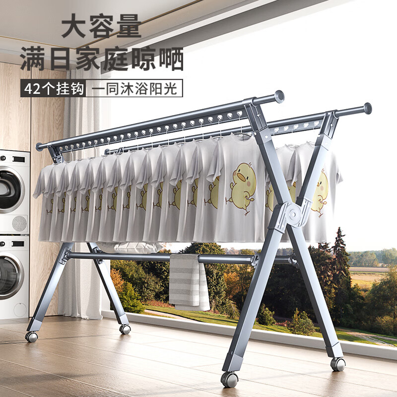豪客家(HKG)晾衣架落地铝合金折叠伸缩室内阳台家用晒衣晒被子神器晾衣杆价格:288.00元!