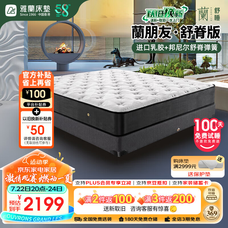 雅兰50周年经典纪念款 整网弹簧偏硬乳胶床垫 蘭朋友舒脊版 1.8*2米价格:2699.00元!