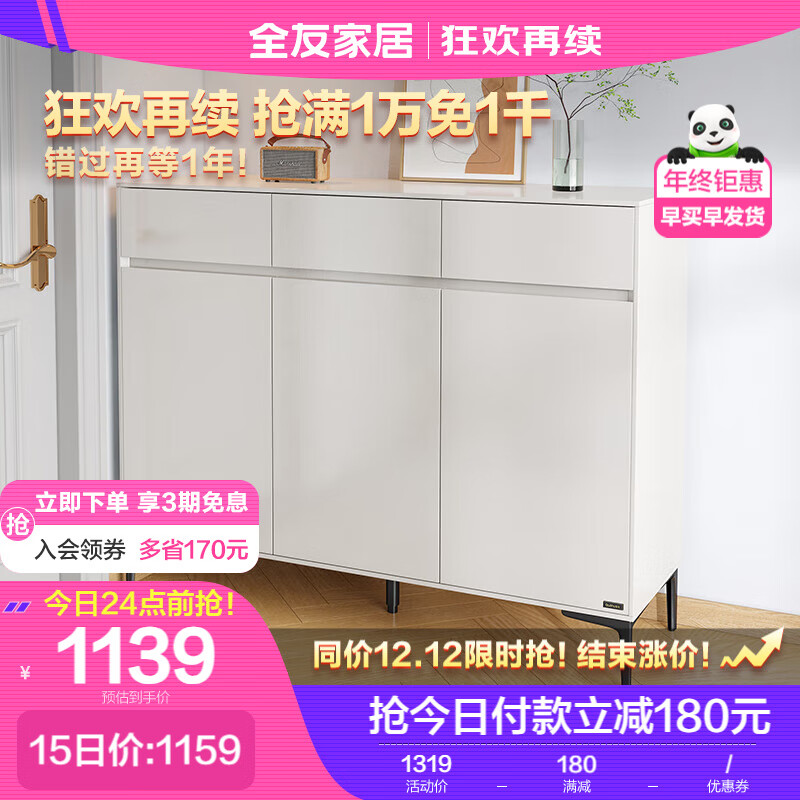 全友家居 鞋柜玄关柜可调节层板E0级环保板材厅126106H 三门鞋柜价格:1319.00元!