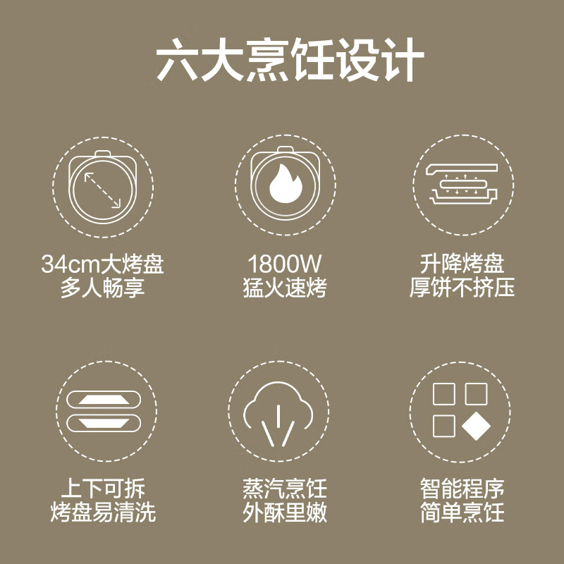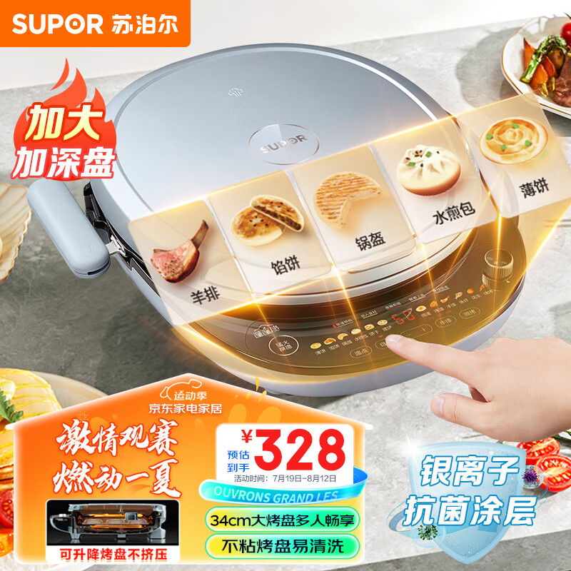 苏泊尔(SUPOR)电饼铛 煎饼锅 烙饼锅 煎蛋锅 不粘锅 家用双面加热 上下盘可拆洗 三明治 早餐机 JD34RQ879价格:329.00元!