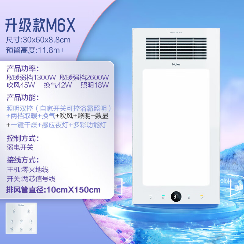 海尔风暖浴霸2600W大功率双电机触控开关感应夜灯浴室暖风机吊顶M6X价格:599.00元!