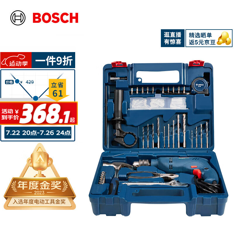 博世(BOSCH)GSB 600 RE 二代升级版600瓦手电钻电动工具箱 多功能冲击钻套装价格:409.00元!