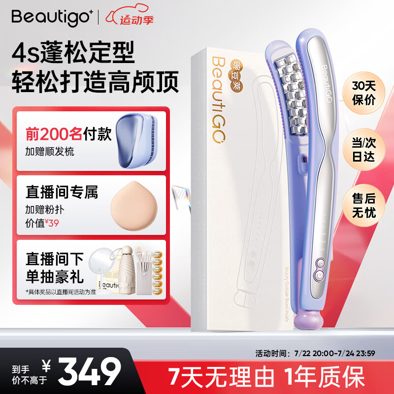 beautigo豌豆荚弧形蓬松夹玉米夹卷发棒 负离子玉米夹板高颅顶自动懒人蓬松造型神器美发防烫不伤发 星光紫价格:349.00元!