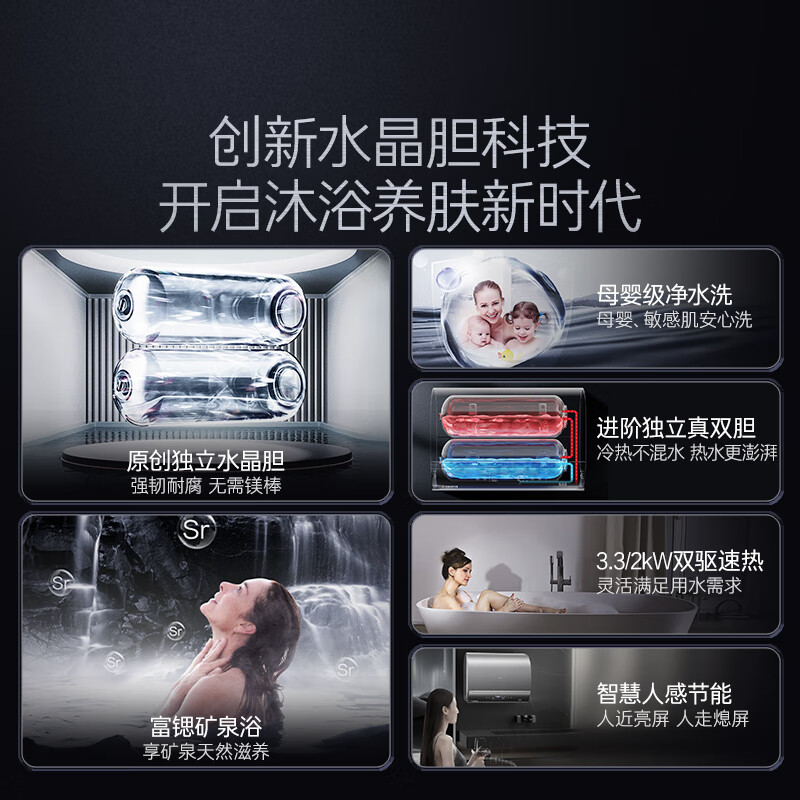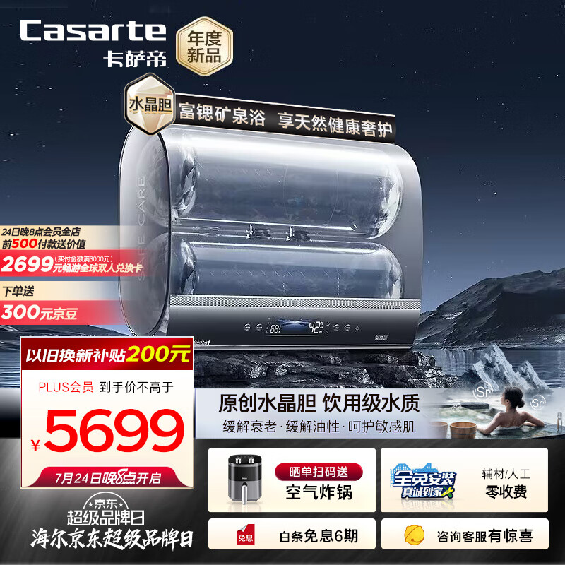 卡萨帝(Casarte)60升【水晶胆PROH3】家用储水式超薄扁桶电热水器富锶汤浴变频速热一级能效CES60HD-PROH3KCEK03U1价格:5999.00元!