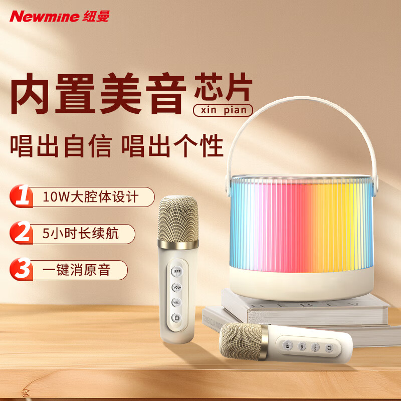 纽曼(Newmine)手提音响音箱一体带话筒k歌家庭KTV自带声卡蓝牙音箱玩具无线唱歌家用卡拉ok便携户外K10 双麦克风价格:94.00元!