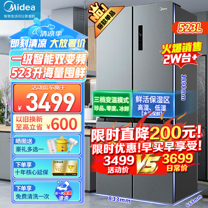 美的BCD-523WSPZM(E)优缺点评测评价: