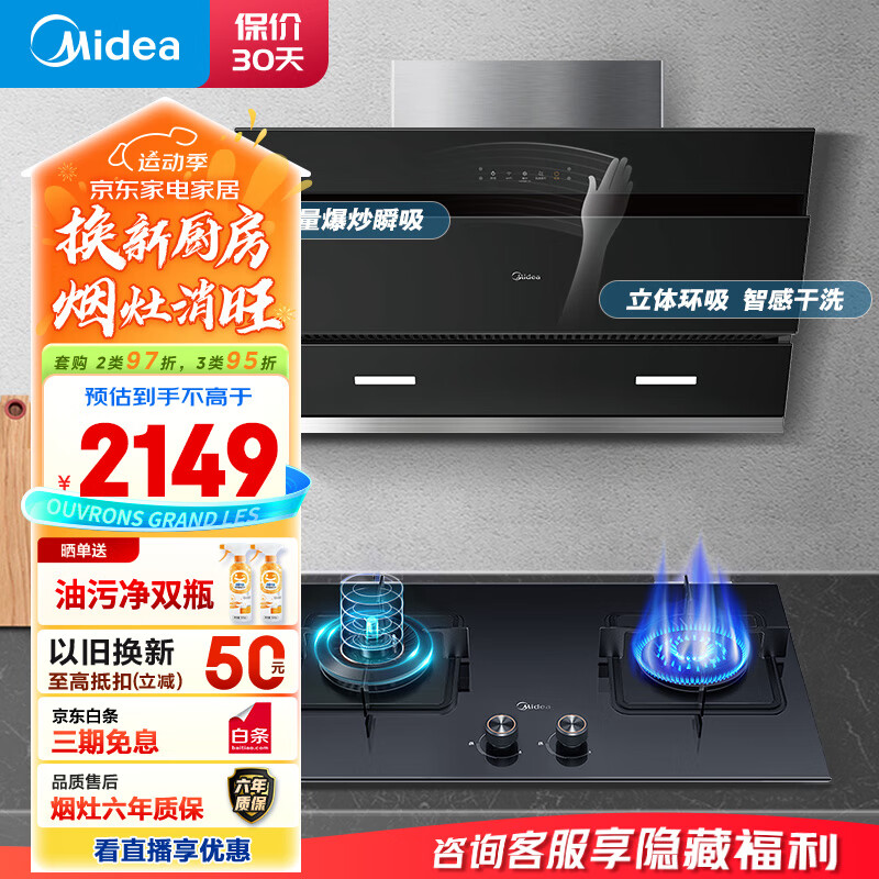 美的(Midea)抽油烟机燃气灶套装小户型厨房烟灶套装 21大吸力自动清洗油烟机灶具套装J25S+Q36S防干烧灶价格:2149.00元!