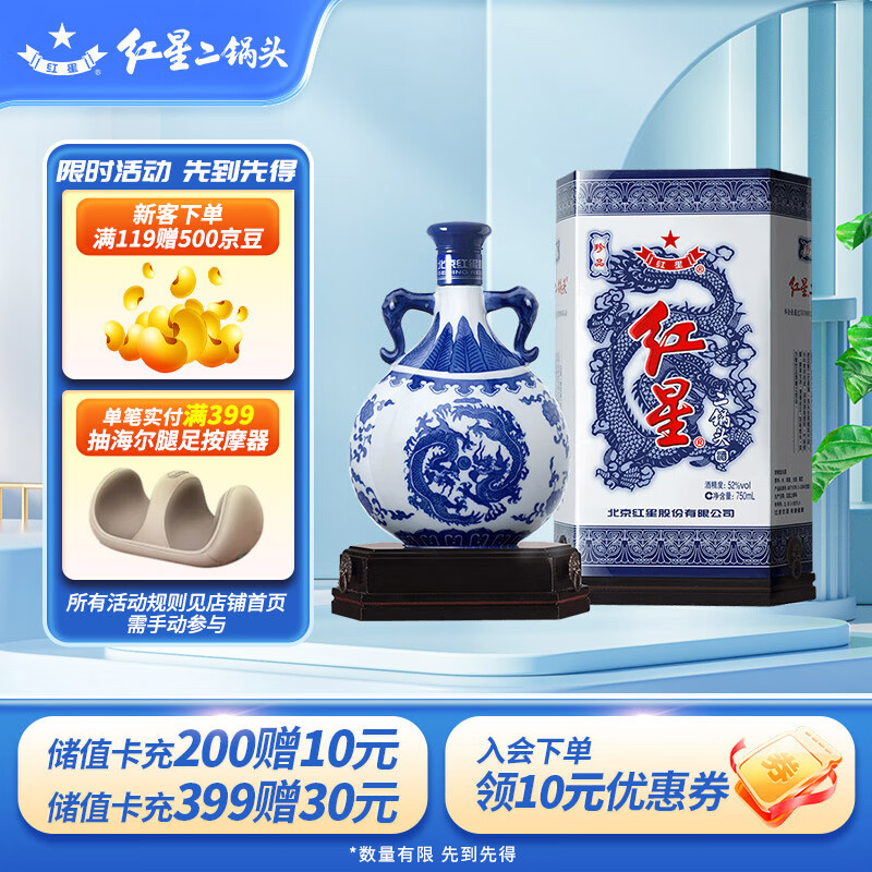 红星二锅头青花珍品 清香型白酒 52度 750ml 单瓶装送礼价格:338.00元!