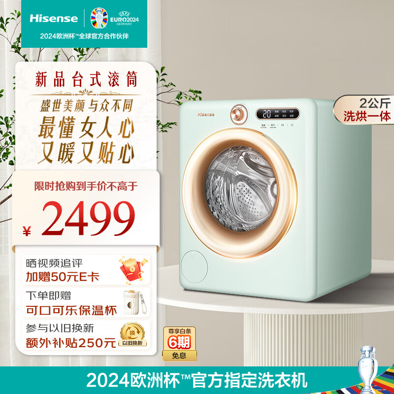 海信(Hisense)罗马假日直驱滚筒洗烘一体洗衣机内衣机复古小型迷你2kg母婴除菌活水洗科技WD20R4价格:2499.00元!